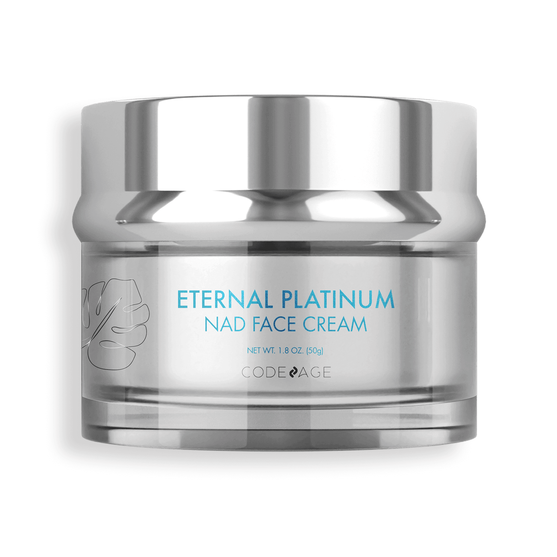 - Eternal Platinum NAD face moisturizer featuring nicotinamide adenine dinucleotide (NAD) with resveratrol and niacinamide