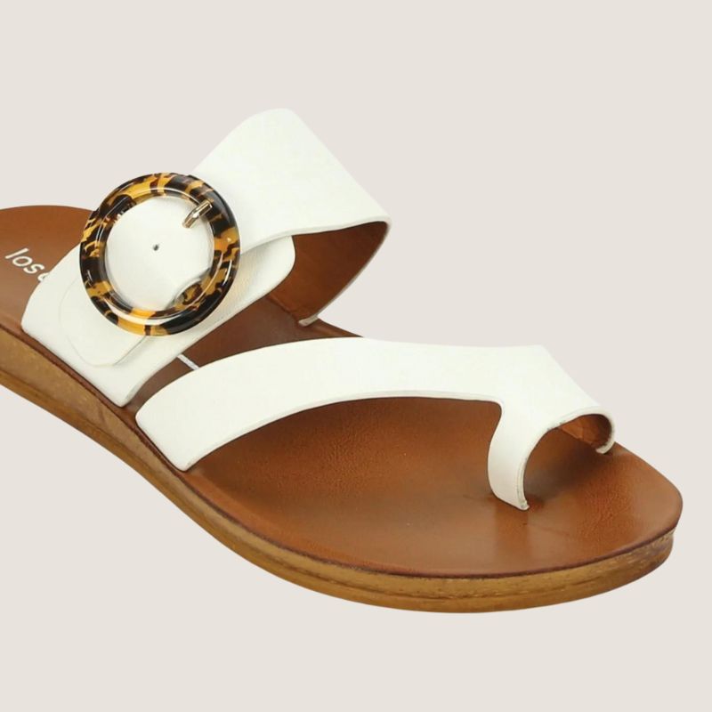 Step confidently into modern summer style with this essential slide. Featuring a gorgeous tortoise buckle, adjustable straps, and Melbourne designs, this shoe has it all. Dotsie is the cute, functional shoe that can be worn anywhere comfortably and that fits in at high fashion events, casual date nights, and anywhere else.