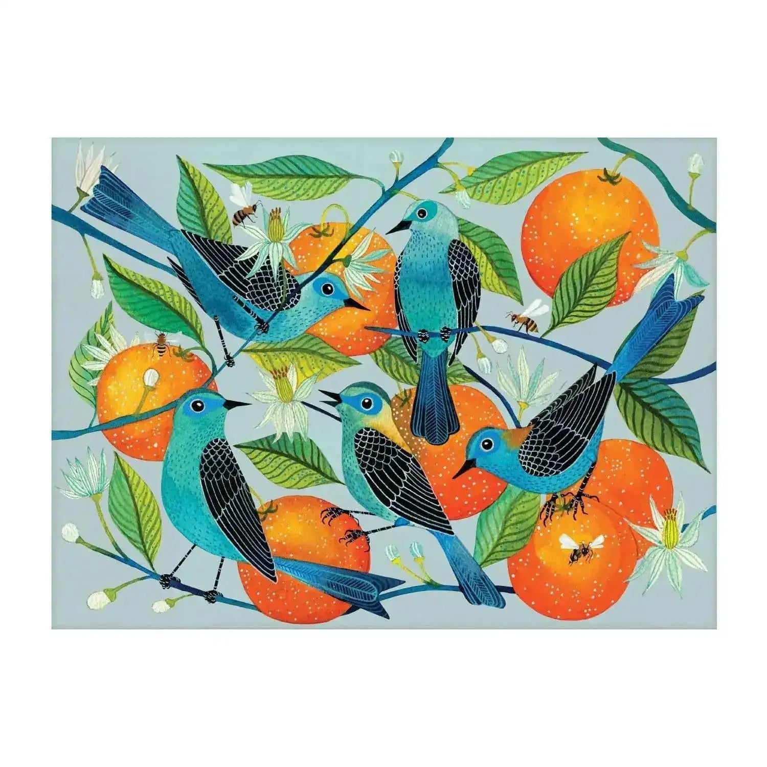 Piece together lovely birds and oranges with this 1000 piece puzzle, featuring an illustration by the talented Geninne D. Zlatkis.